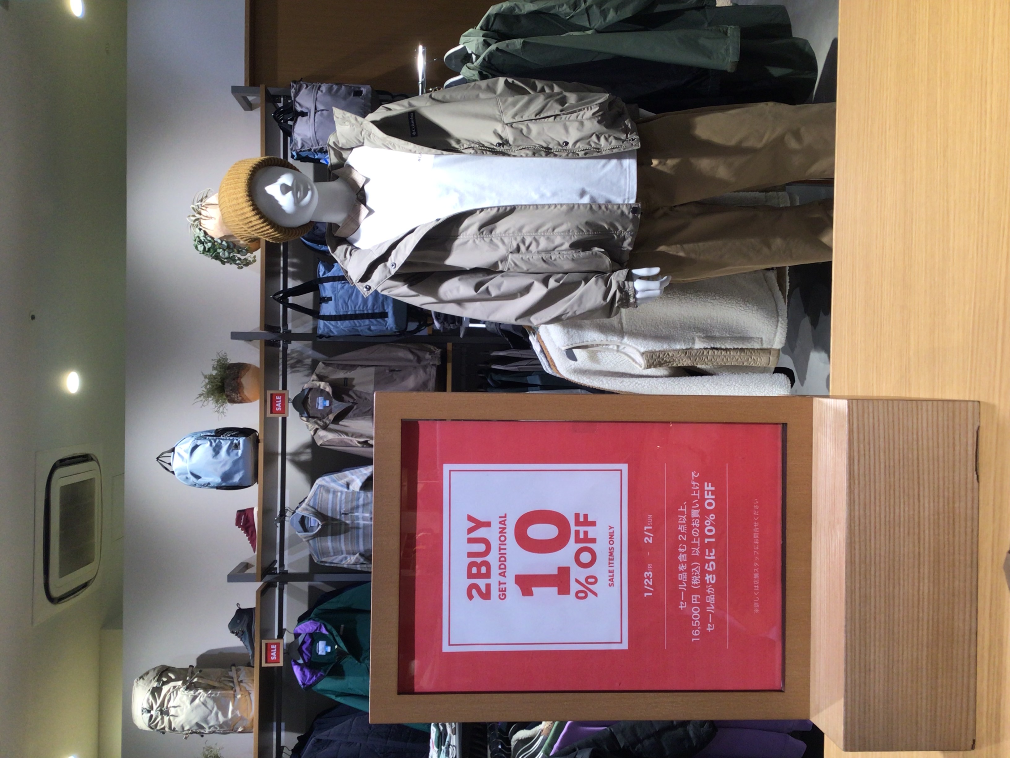 Hello! This is Columbia on the second floor. It's getting colder as we approach February. Our 20% and 30% off sale items are even more affordable. We still have plenty of down jackets and other items in stock. Beat the cold with Columbia. We look forward to seeing you!