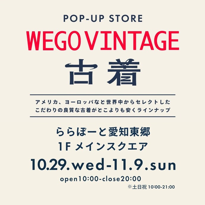WEGO VINTAGE POP-UP STORE for a limited time! [10/29 (Wed) - 11/9 (Sun)]