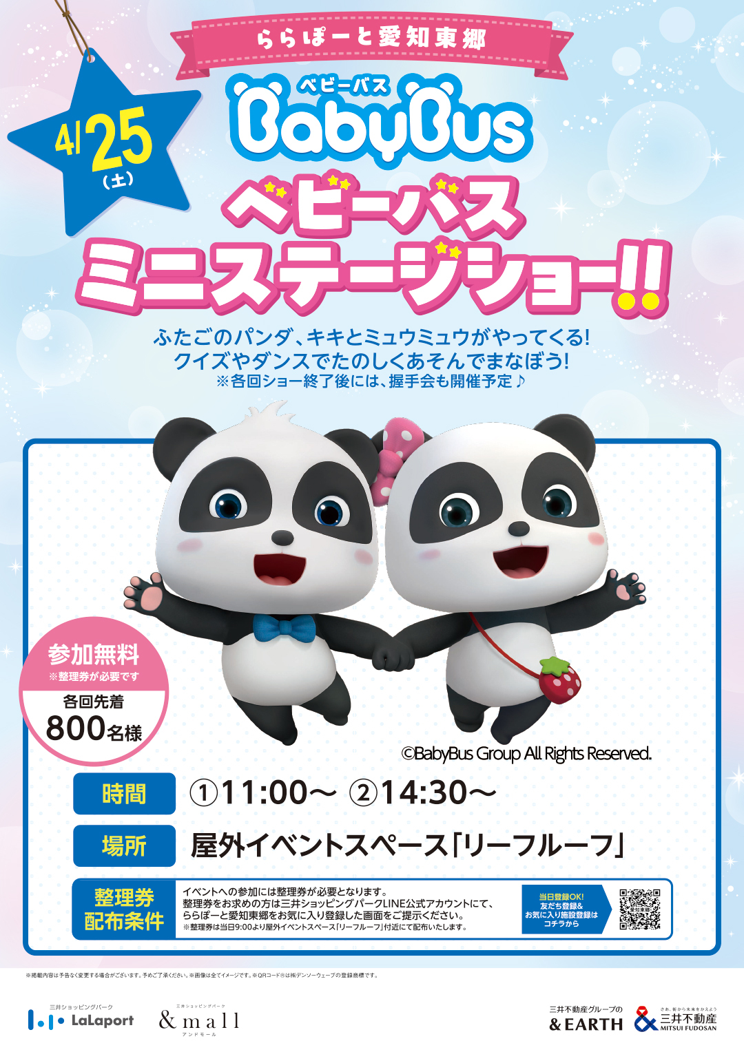 ふたごのパンダ、キキとミュウミュウがやってくる!クイズやダンスでたのしくあそんでまなぼう!