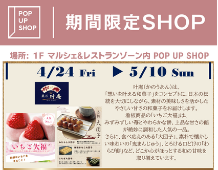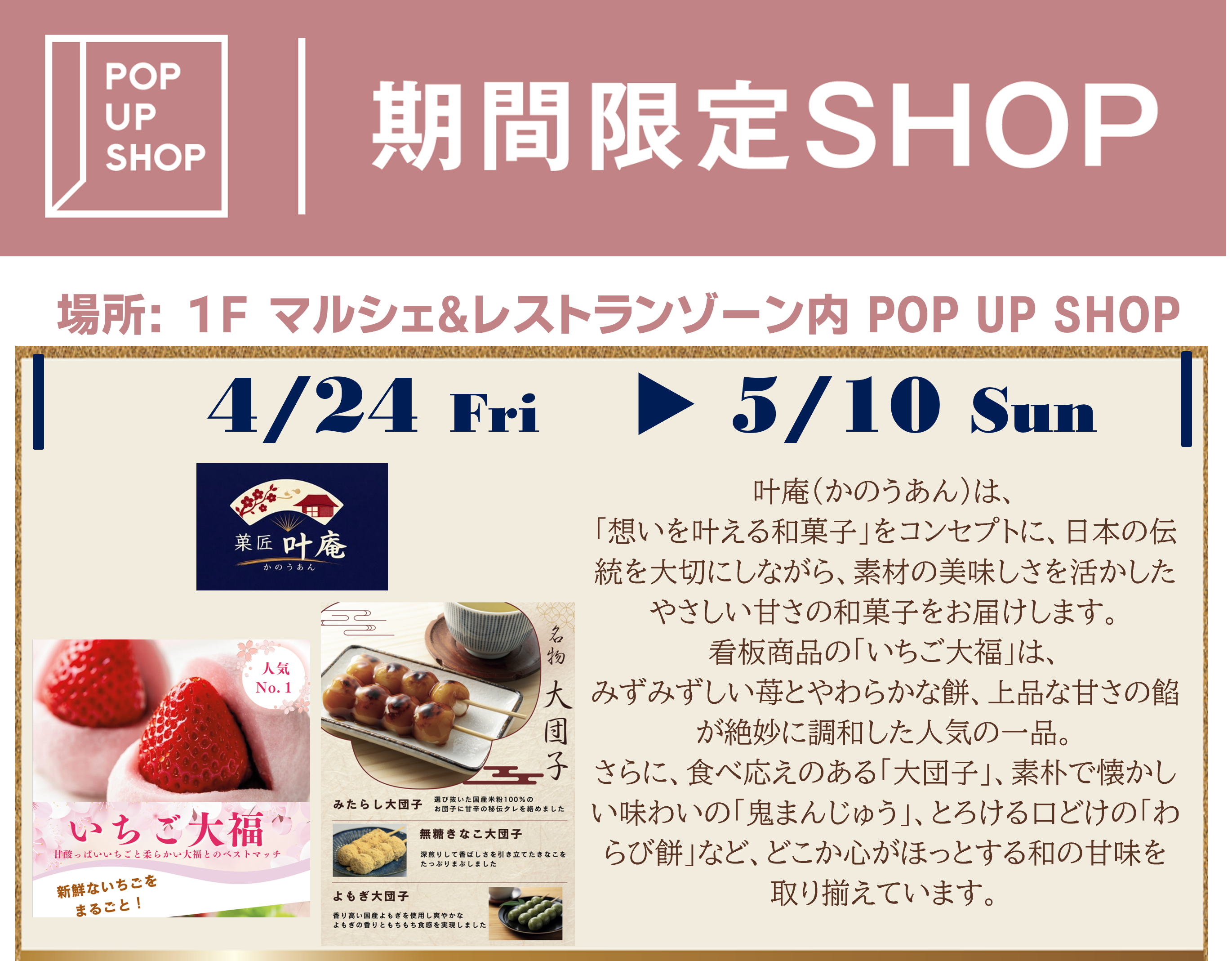 - Kanoa Sweets will be opening a pop-up shop for a limited time! [April 8th (Wed) - April 23rd (Thu)]