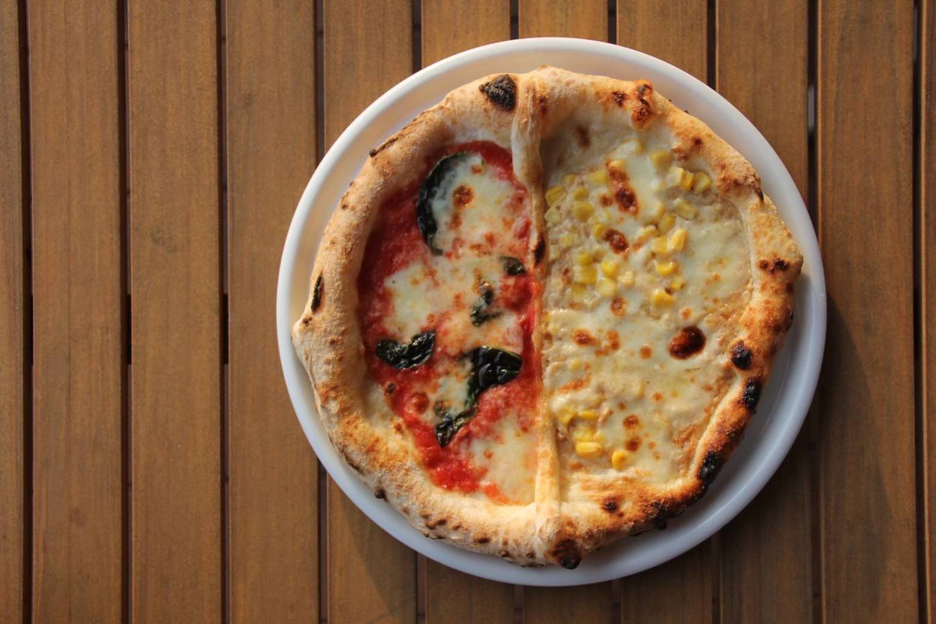A half-and-half pizza set is available only on weekdays. Choose half of your choice of pizza. It comes with fries or salad, soup, and a drink, and starts at 1,600 yen (some pizza menus do not include this option). For an additional fee, you can also add a half-portion of pasta, making it a great value set.