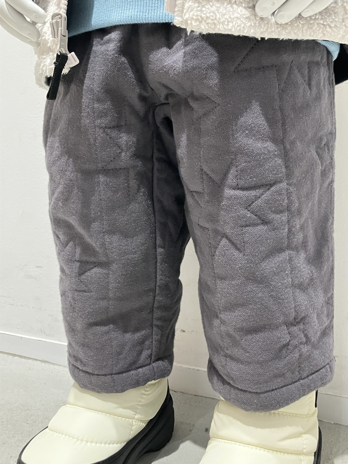 A casual baby outfit that combines a sweatshirt in a soft, gentle color with quilted pants.