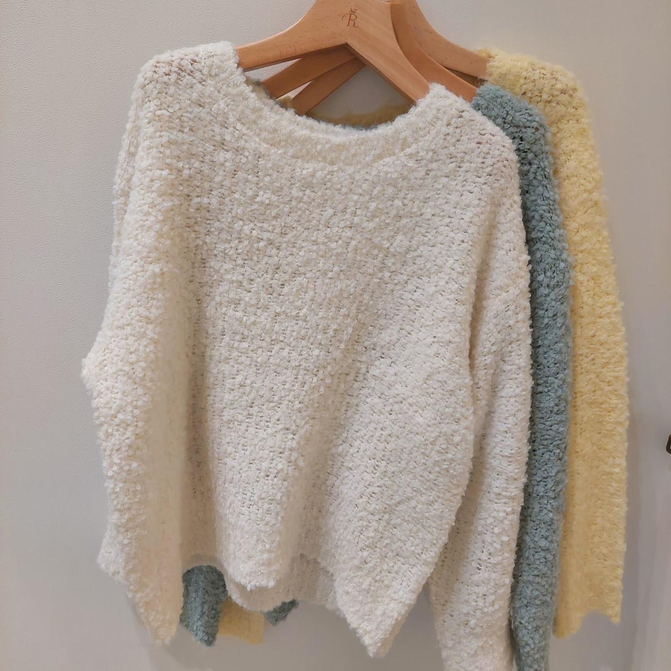 - A cute, fluffy boucle-colored knit