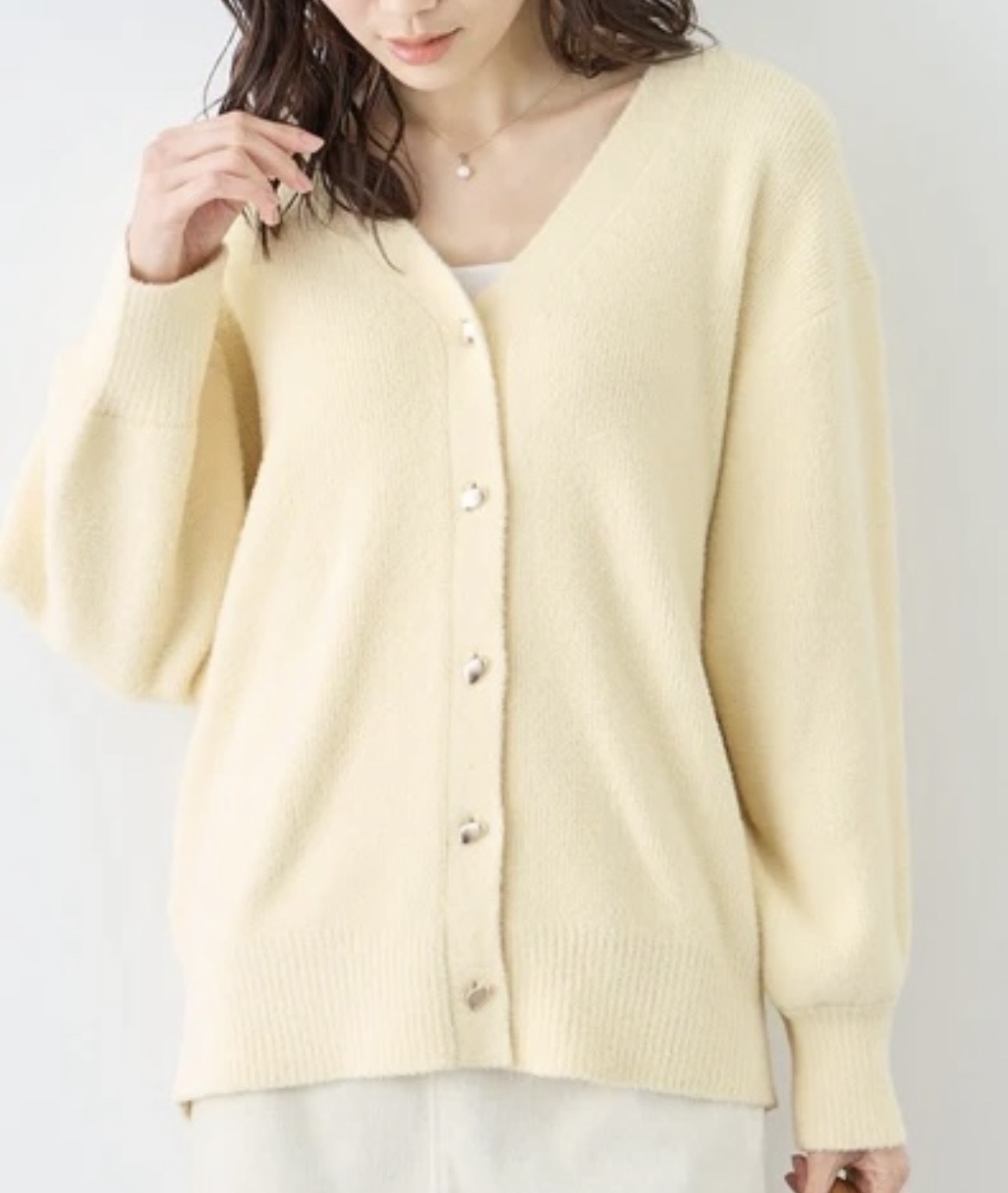 - New color added♡ Soufflé knit series: short cardigan with metal buttons