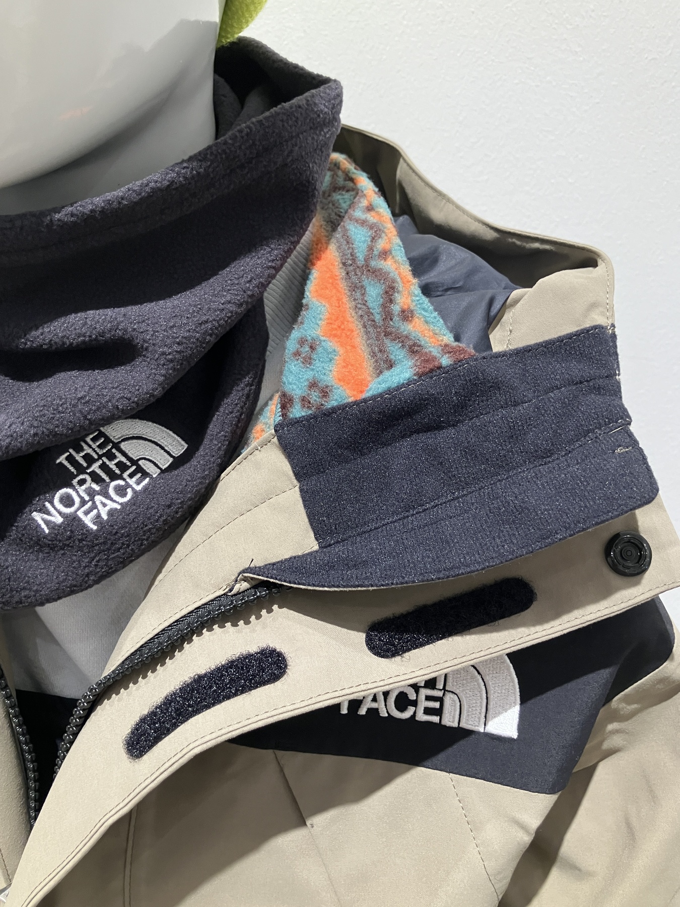 内側には薄手の柄入りフリースジャケットをZIP IN ZIPで連結し、保温性と温度調整のしやすさを両立。