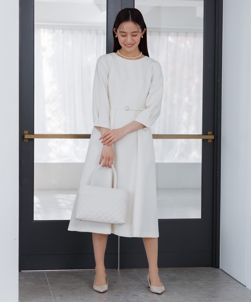 上品に広がるフレアシルエットがポイントのフォーマルワンピース。