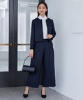 - Collarless tweed jacket and wide pants set / 2-piece set