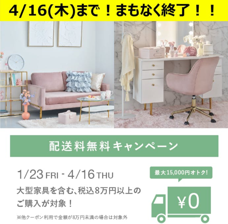 At Francfranc, shipping is free for purchases totaling 80,000 yen or more (including tax), including large furniture items!