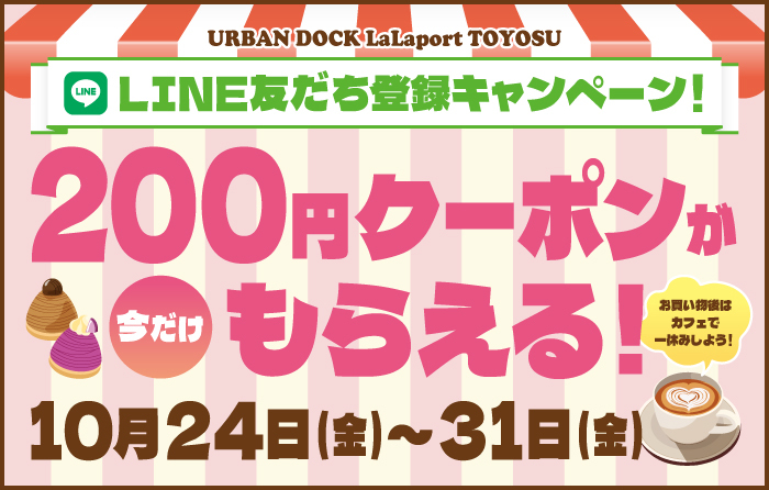 - [Urban Dock LaLaport TOYOSU] LINE Friend Registration Campaign! Get a 200 yen coupon now!