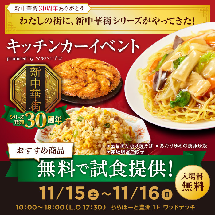 To commemorate the 30th anniversary of the birth of Maruha Nichiro's "New Chinatown Series," we will be holding a special food truck event that can only be experienced here.