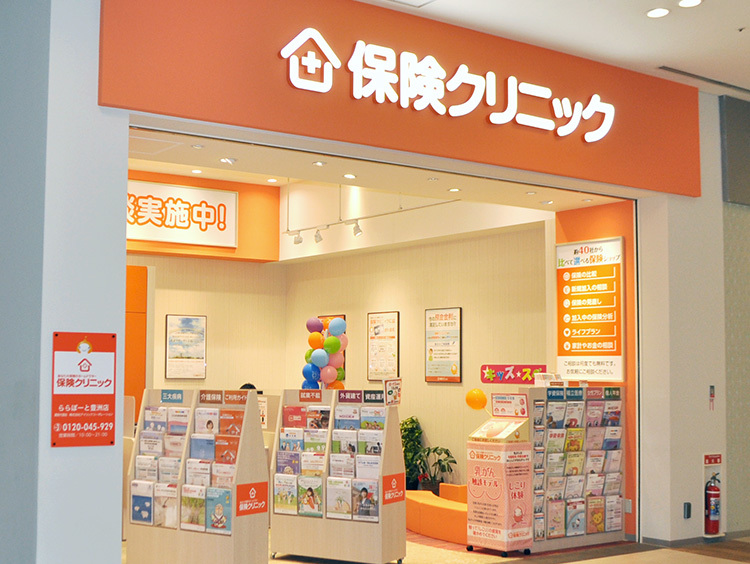 HOKEN CLINIC is an insurance Shops where you can compare and choose from about 40 companies, including life insurance and non-life insurance. We accept consultations on anything related to insurance, including reviewing and signing up for new policies, as well as analysis, comparison, and small questions and concerns about insurance. Consultations are free, so please feel free to stop by after shopping or on your way home from work.