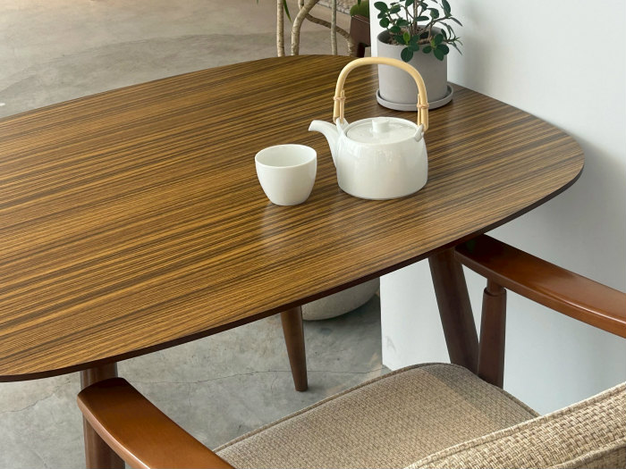 The "D Chair" was reproduced after about 30 years and is now a beloved item of Karimoku 60, and the "D Table" was created to be used in conjunction with the D Chair.