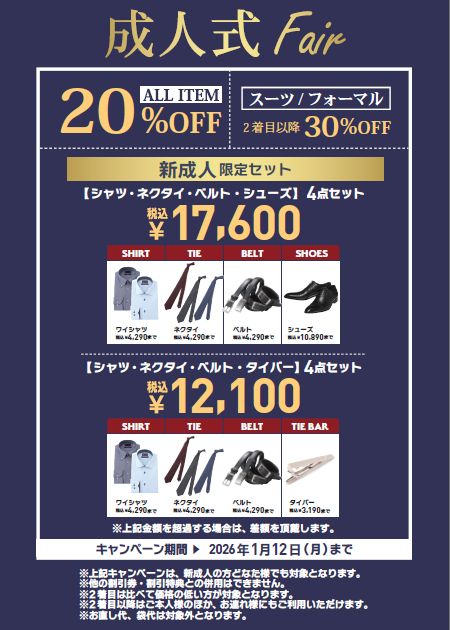 ●Customers celebrating Coming of Age Day receive 20% off any item in the store!!