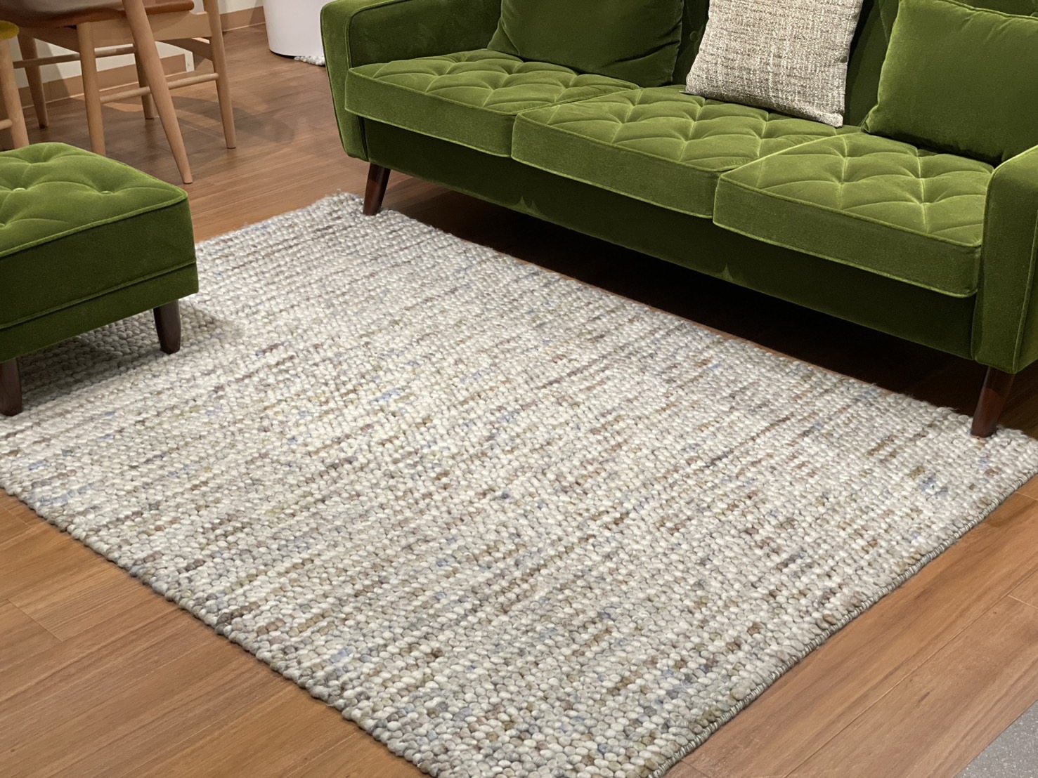 By weaving thick wool yarn into a loop, it creates a three-dimensional effect and a comfortable volume the moment you place it in your room.