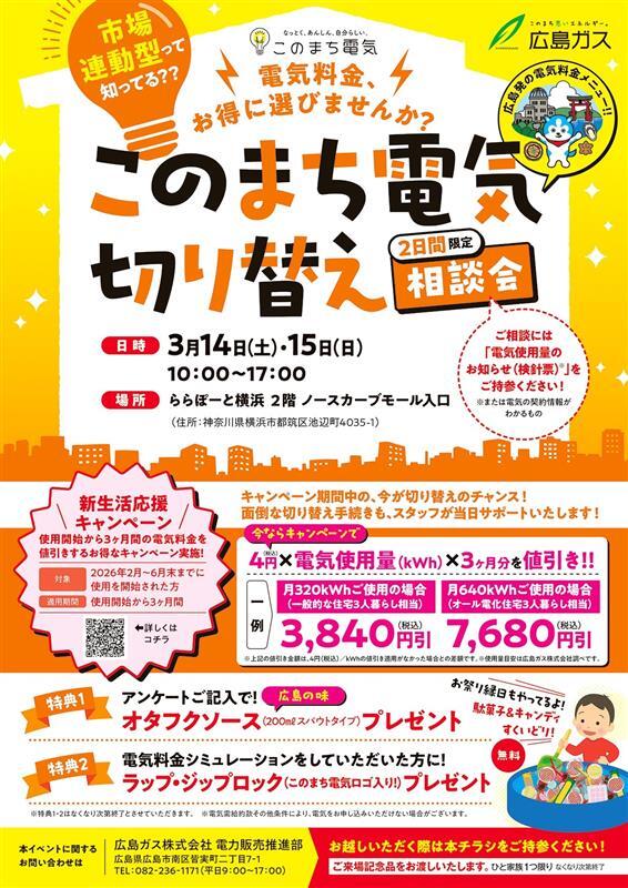 *The retailer of "Konomachi Denki" is Hiroshima Gas Co., Ltd.