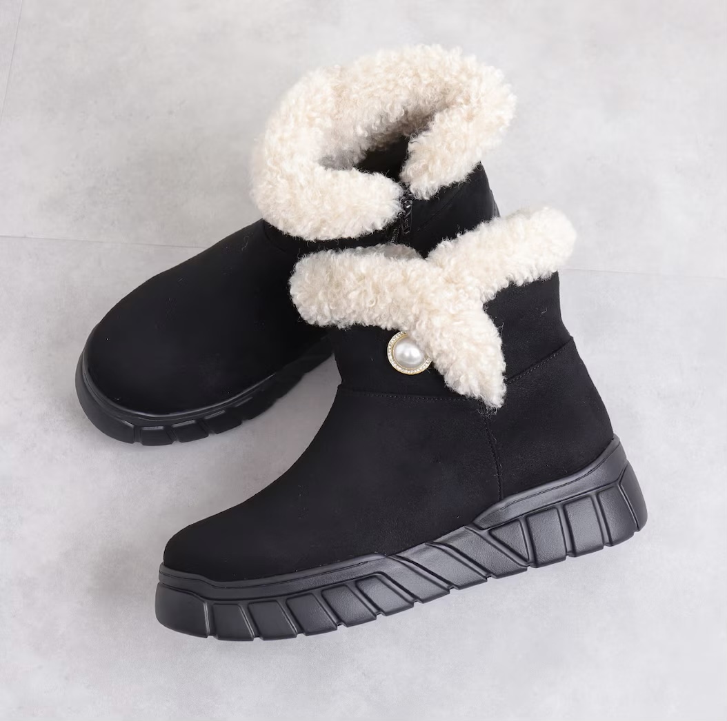 履き口のフェイクボアとパールモチーフが可愛いショートブーツ(=^x^=)