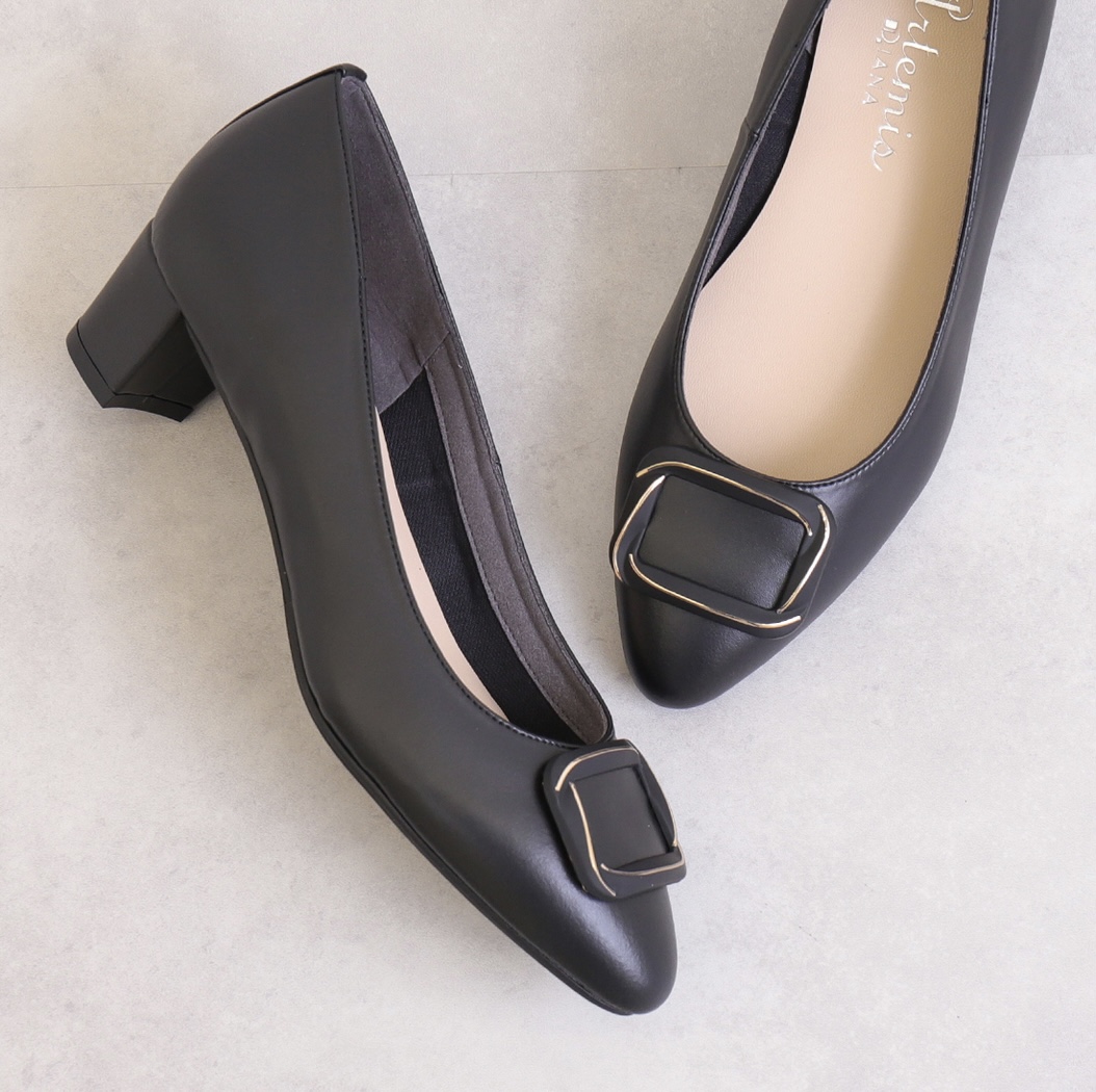 オフィスコーデにも合わせやすいベーシックなデザインに、バックルのメタリックカラーがアクセントになります(≧∀≦)