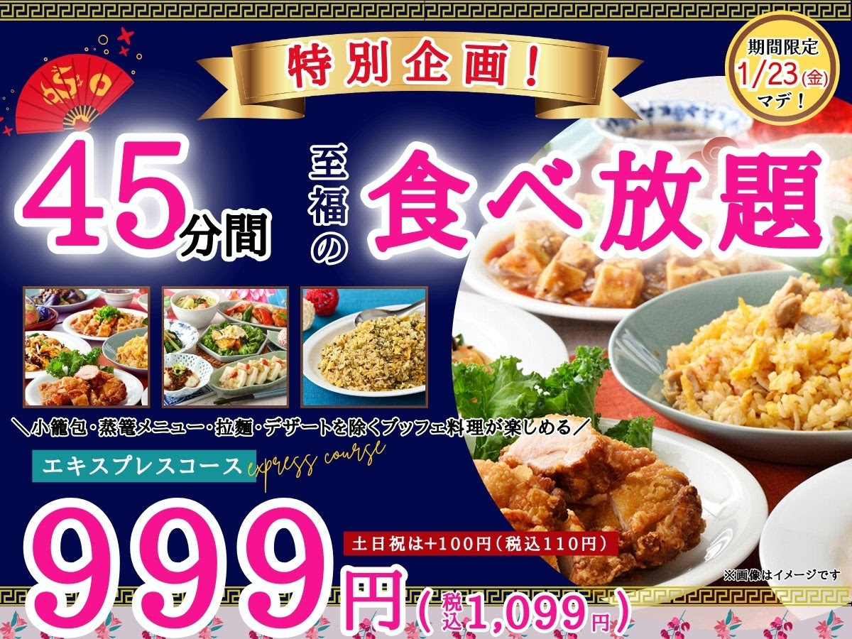 (Buffet dishes are available, excluding Xiaolongbao, dim sum, ramen, and desserts)