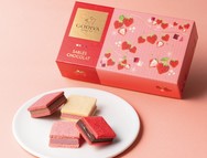 A smooth chocolate ganache sandwiched between crispy baked sables. Four Valentine's Day-exclusive "Strawberry" flavors are included in this adorable box featuring a strawberry illustration.
