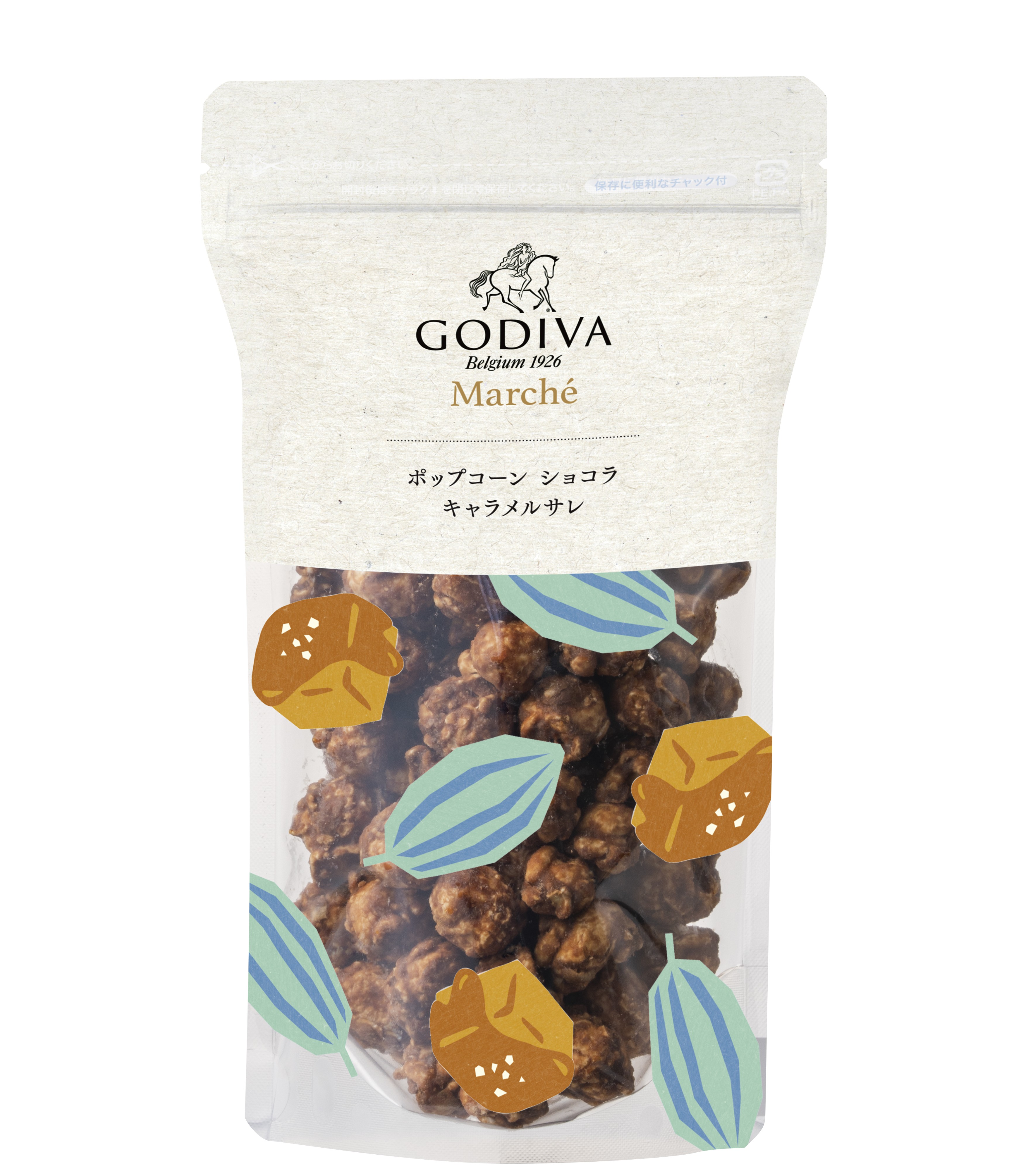 Lightly textured popcorn coated with fragrant caramel and Belgian chocolate.