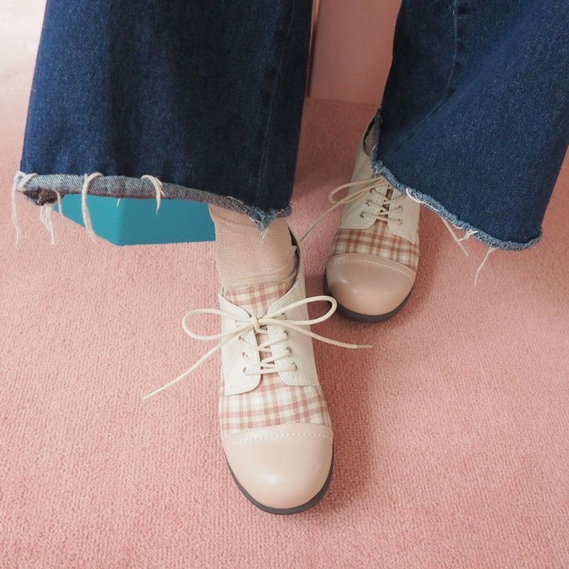 These cute, rounded shoes with a raised heel are extremely comfortable to wear and have many repeat customers. The unique combination of materials and colors from Ashinaga Ojisan creates a playful pair of shoes.