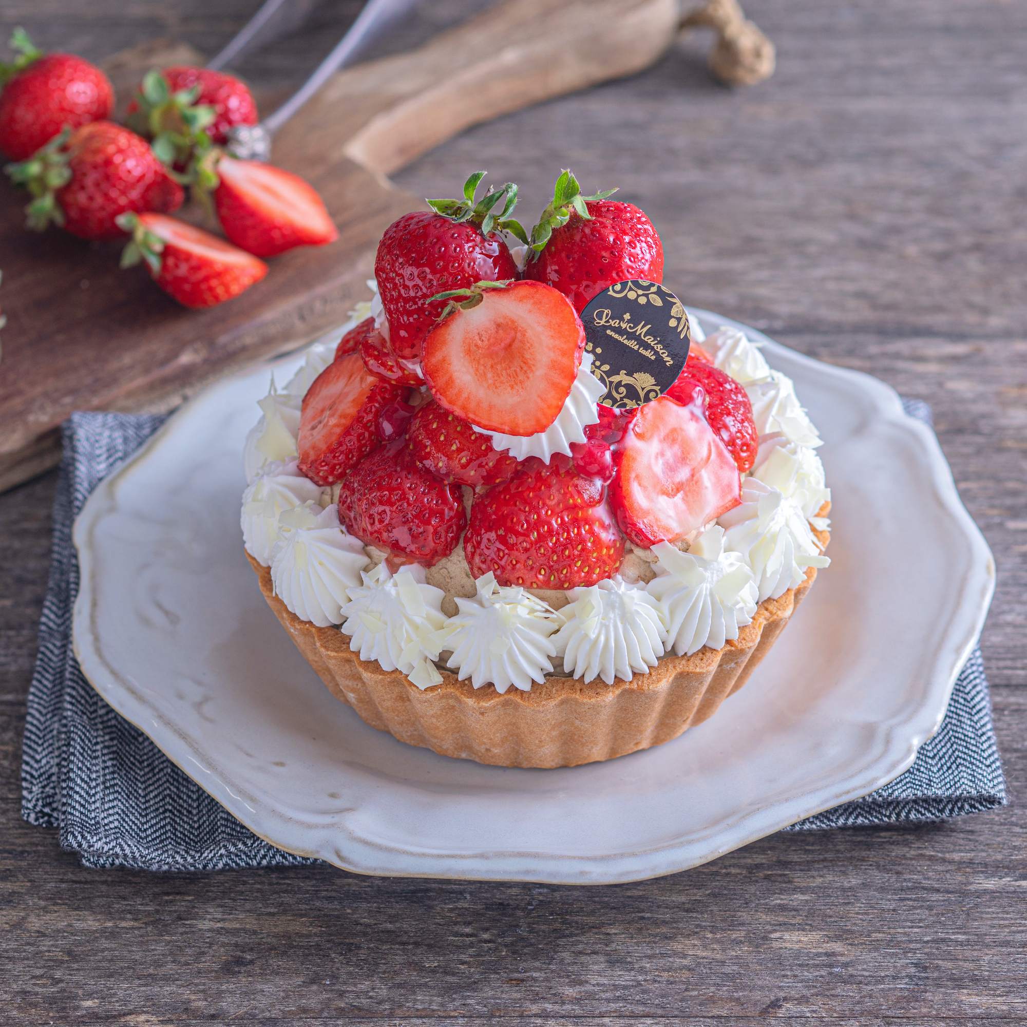 "White Strawberry and Amaou ar* Grey Cream Tart"