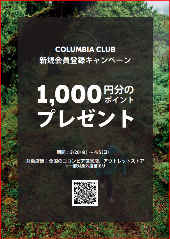 - コロンビアアプリ新規登録1000ポイントキャンペーン!!