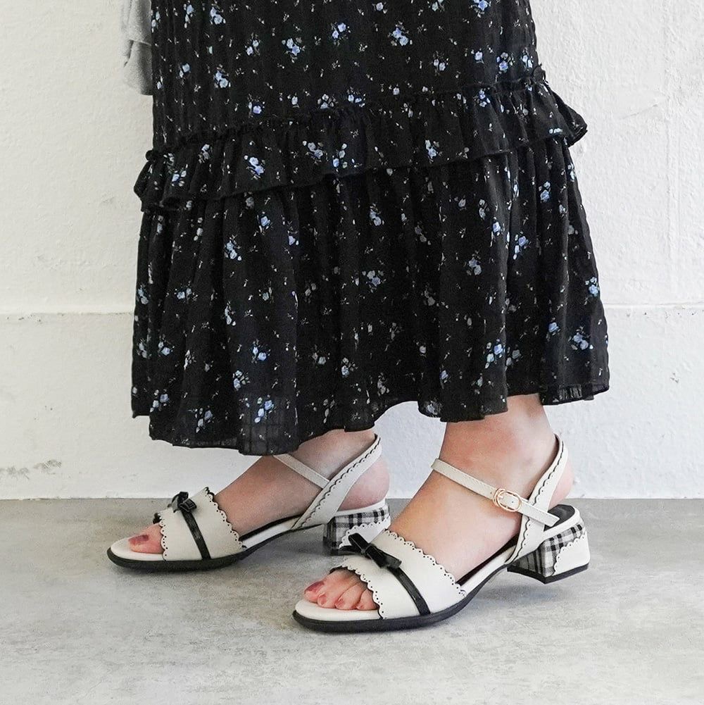 These lovely sandals feature an eye-catching ribbon detail on the instep. A key design element is the frill-like picot laser cuts on the upper and heel. They're adorable from every angle.