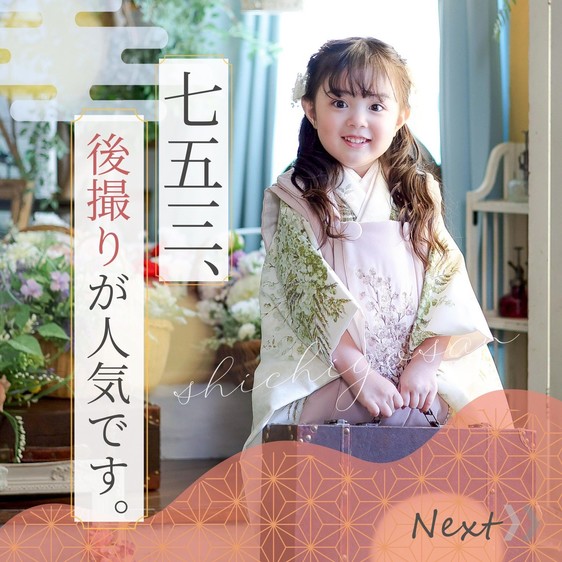 We can accommodate a variety of photo shoots, including newborn photos, maternity photos, belly painting, shrine visits, half birthdays, birthdays, smash cakes, first festivals, Shichigosan, graduation and enrollment celebrations, half coming-of-age ceremonies, coming-of-age ceremonies, long-sleeved kimonos, and graduation hakama. We also offer rentals of various kimonos for going out, including Shichigosan kimonos, Homongi kimonos, and Montsuki hakama. We have brochures available, so please drop by.