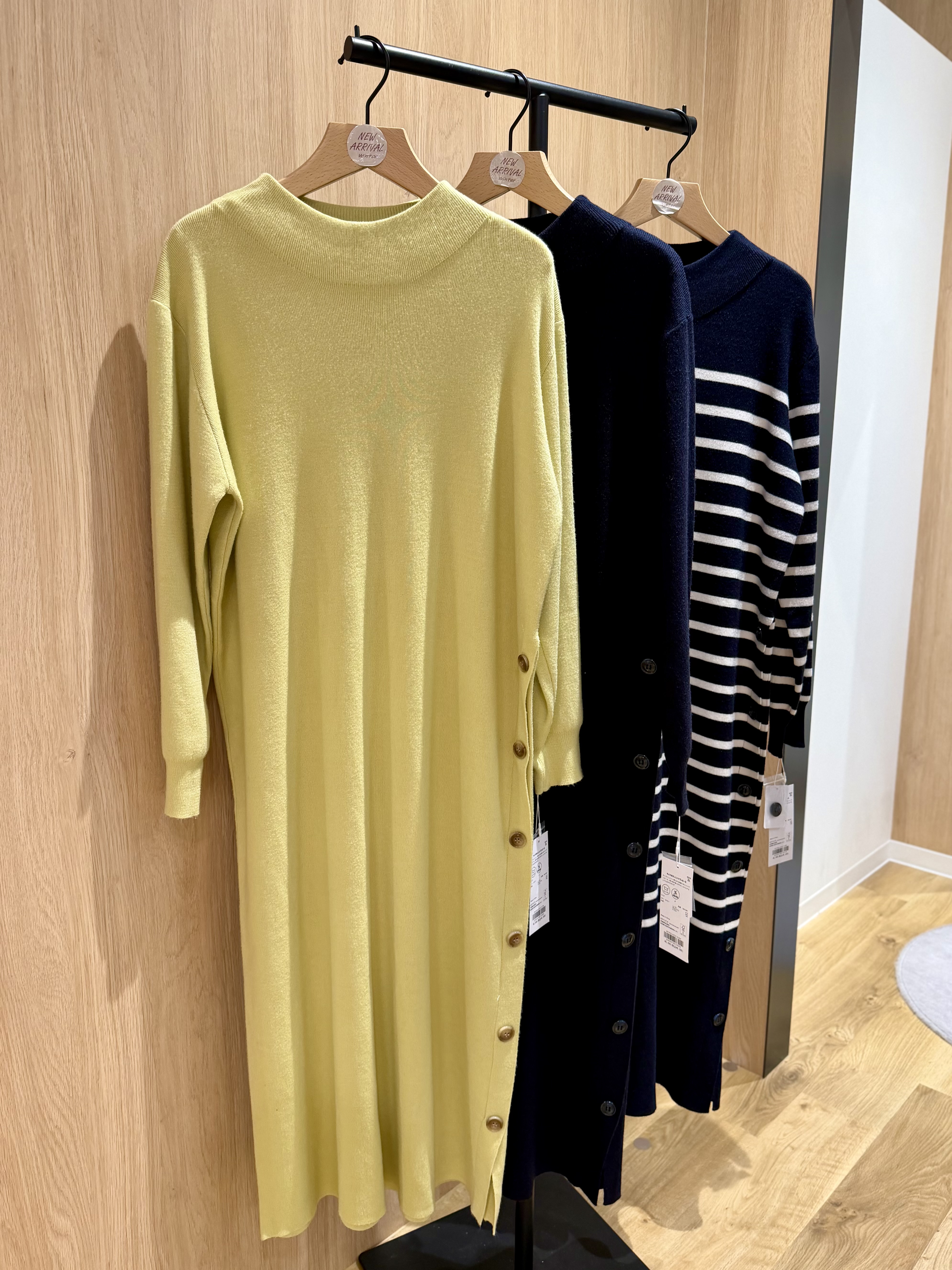サイドのボタンがアクセントになる柔らかニットワンピース♫