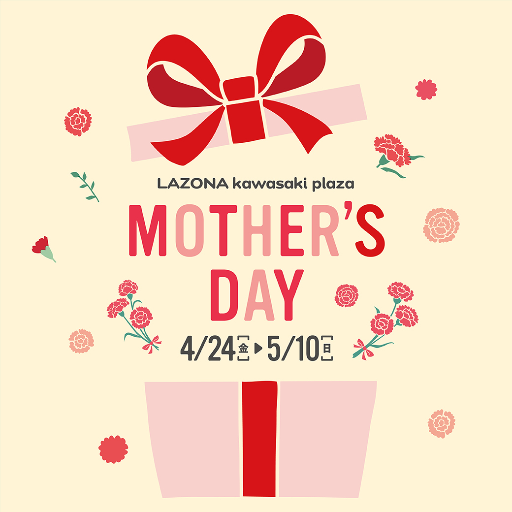 At LAZONA Kawasaki Plaza, we'll be showcasing Mother's Day items carefully selected by each Shops, focusing on general merchandise and fashion items.
