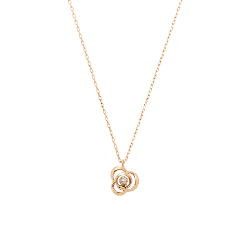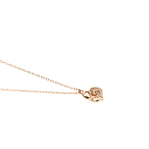 The rounded silhouette and the shine of the pink gold bring out the cuteness of the delicate rose, and the sparkle of the small diamonds adds a subtle sparkle.