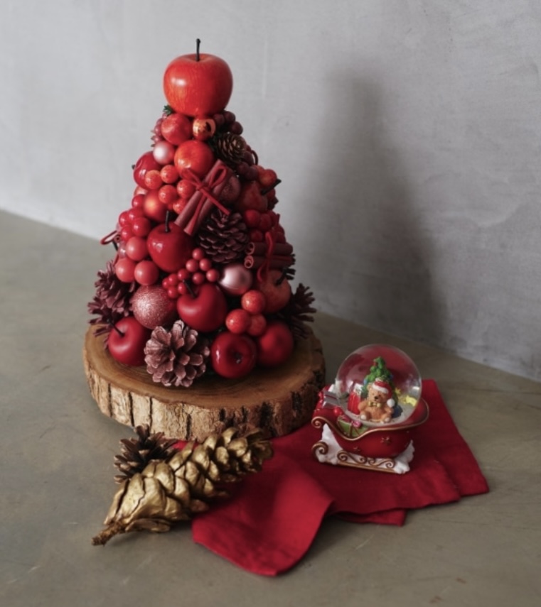 The design is mainly based on apples, but also uses plenty of natural ingredients such as cinnamon and pine cones, while still maintaining a sense of elegance.