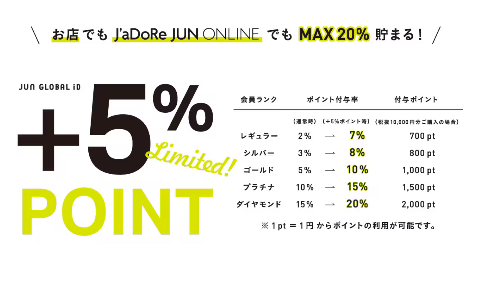During the period from 2/6 (Fri) to 2/8 (Sun), you will receive an additional 5% JUN GLOBAL ID points depending on the purchase amount of regular products and your membership rank!