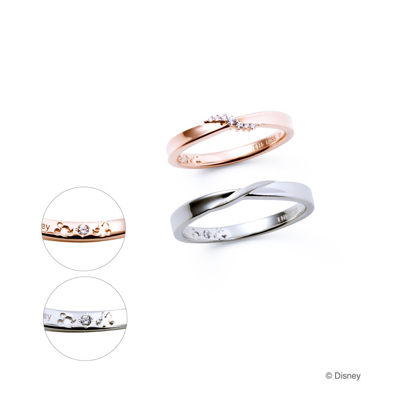 The inside of the ring features a subtle design of silhouette of Mickey and Minnie gazing at each other.