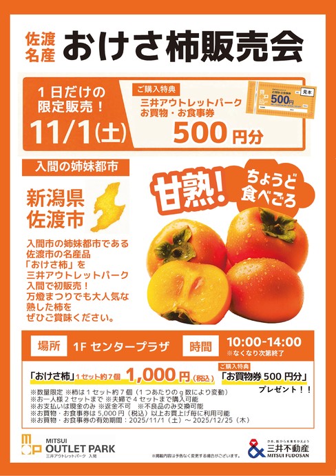 - 【ご案内】【11/1(土)おけさ柿販売会】館内優先入場のご案内について