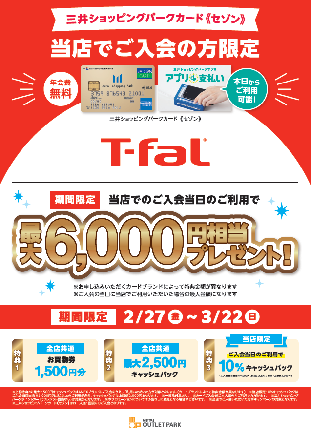 Receive a gift worth up to 6,000 yen when you use T-fal on the day you sign up!