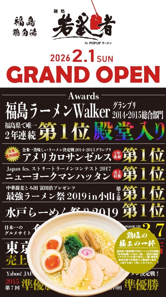 - [Mensho Wakamusha by POP UP Ramen] Notice of reopening on Sunday, February 1st