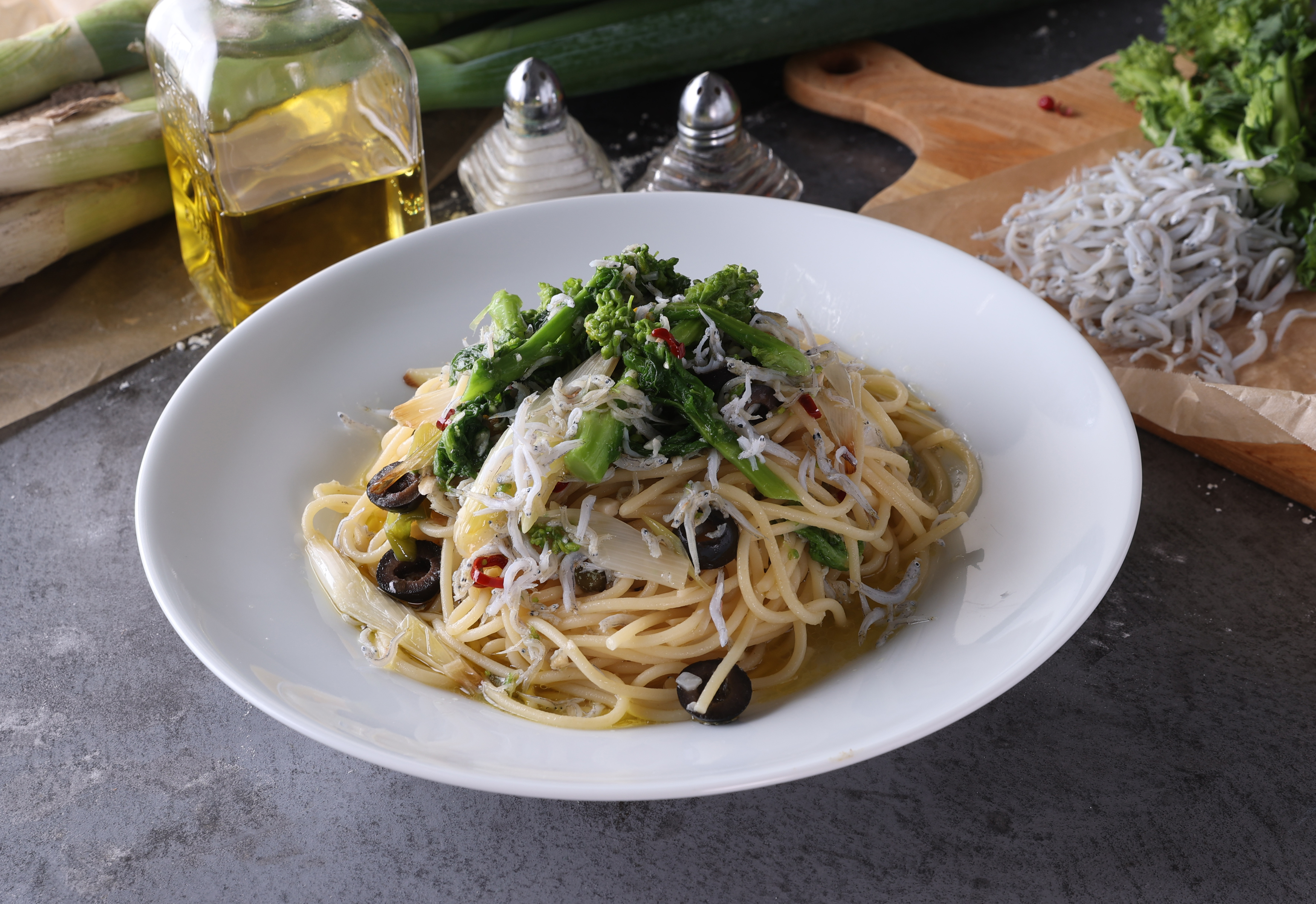 [Spring Gourmet] Pasta with Iwatsu leek, Kobe dawn whitebait, and rape blossoms