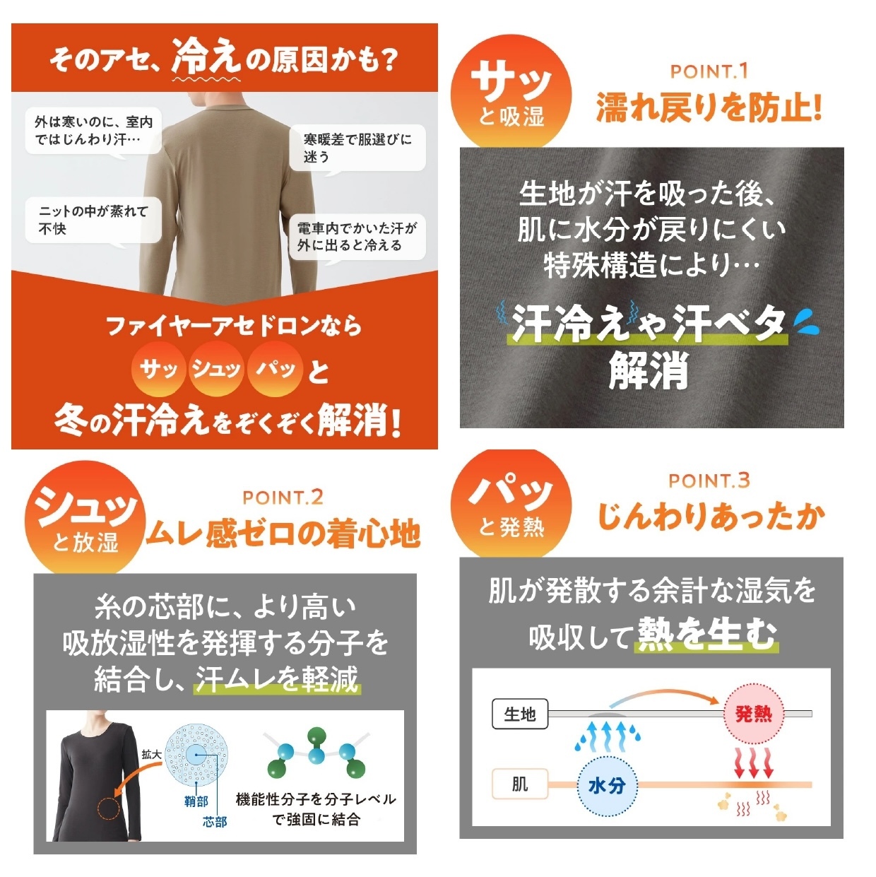 Functional fabric that absorbs and releases moisture to eliminate the discomfort of sweat.