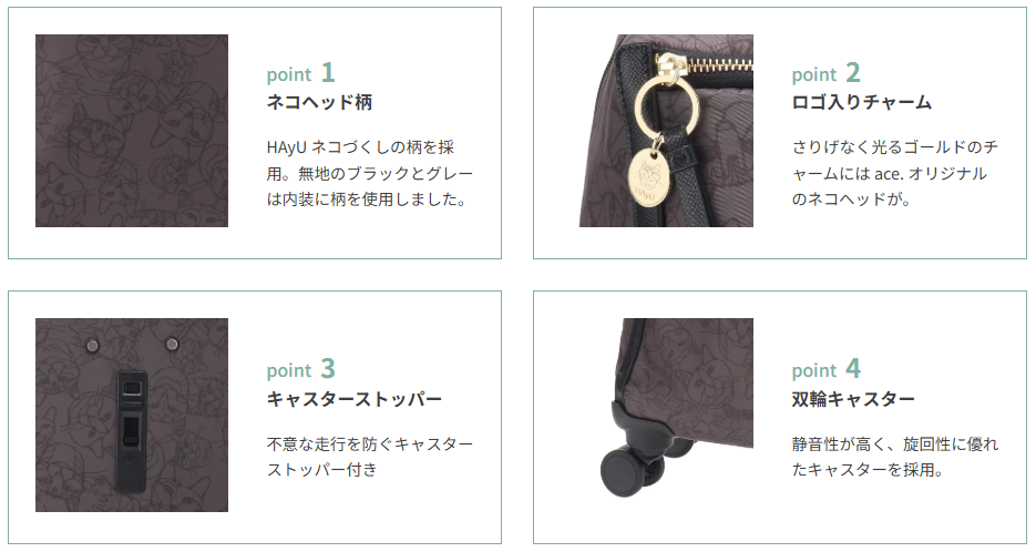 A fun casual trolley with a HAyU cat pattern that shows off various expressions.