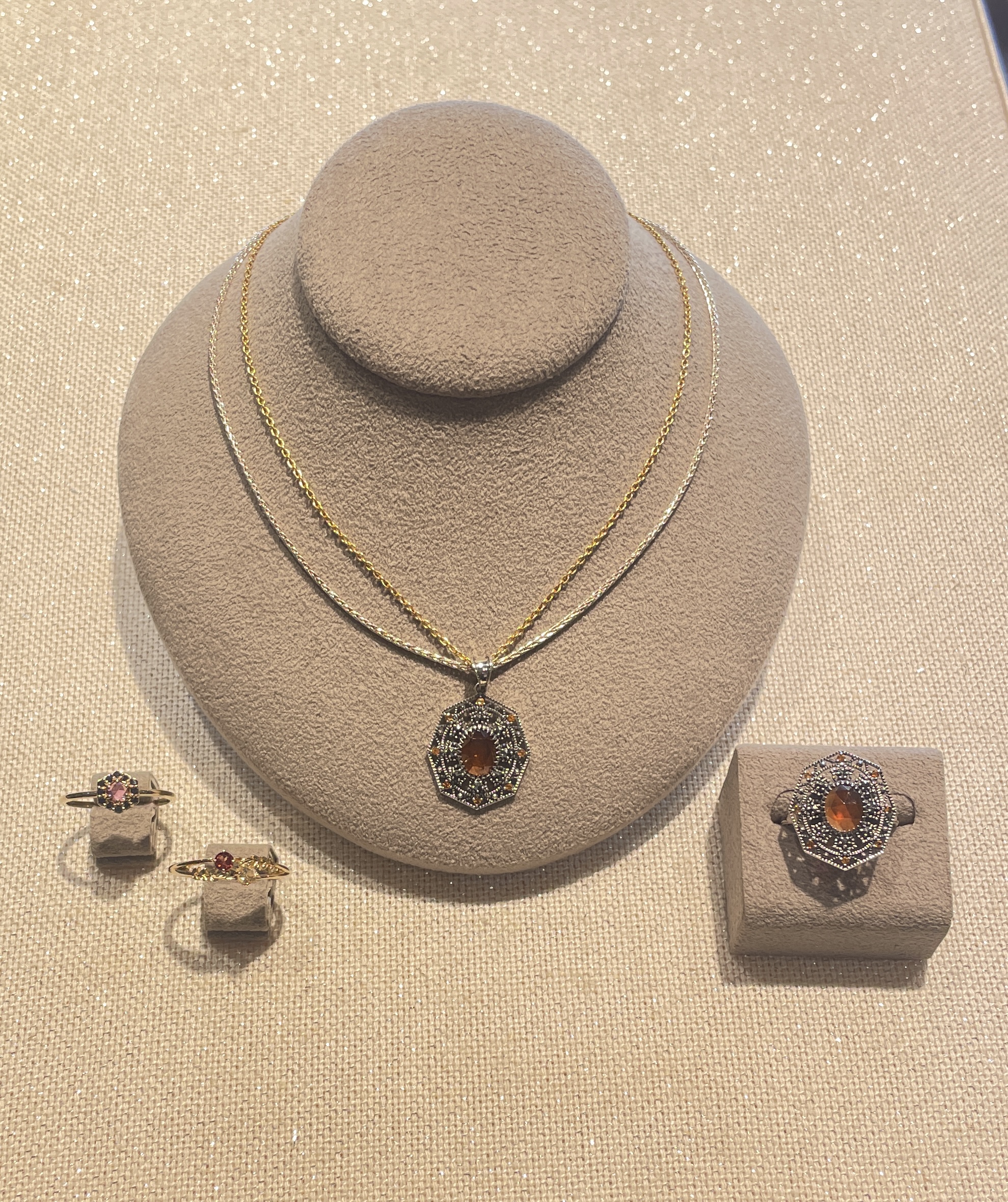 The striking garnet adds an accent to winter outfits, which tend to use dark colors, further enhancing their charm. It is also recommended for classic outfits.