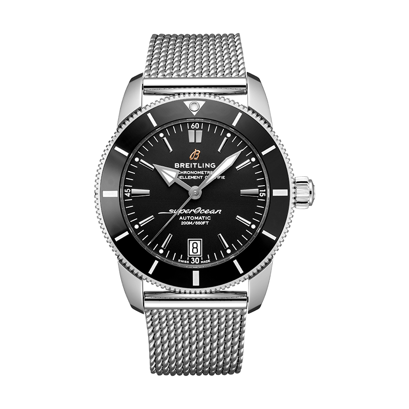Inspired by the original Superocean from the 1950s, the Superocean Heritage combines iconic design with modern touches. This elegant diver's watch features the iconic triangular hands and a unidirectional rotating bezel with a ceramic insert. This model is powered by the BREITLING Manufacture Caliber B20, a COSC-certified chronometer based on the Tudor Caliber MT5612.