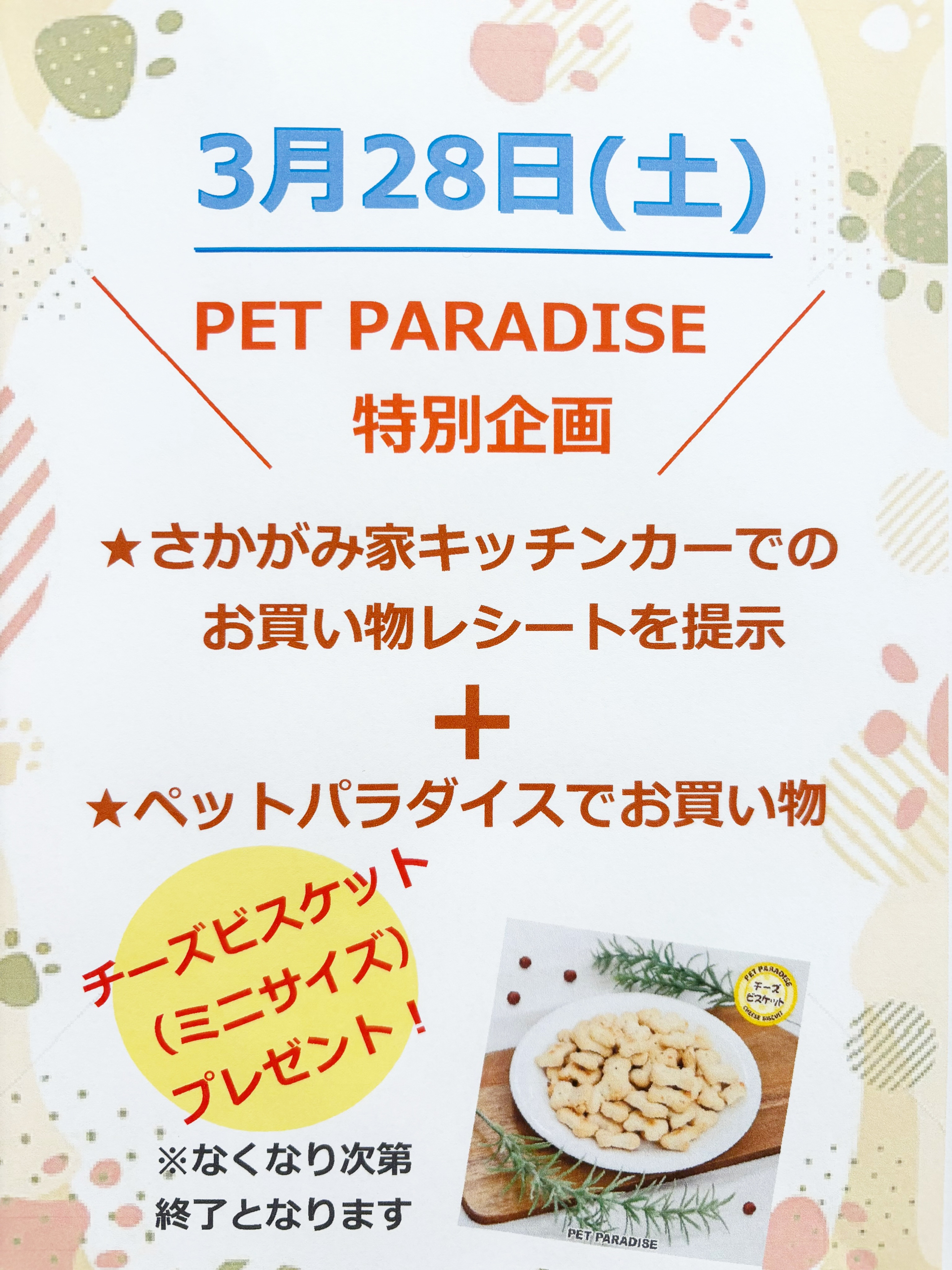 If you present your shopping receipt from Sakagamike Food Truck and make a purchase at PET PARADISE,