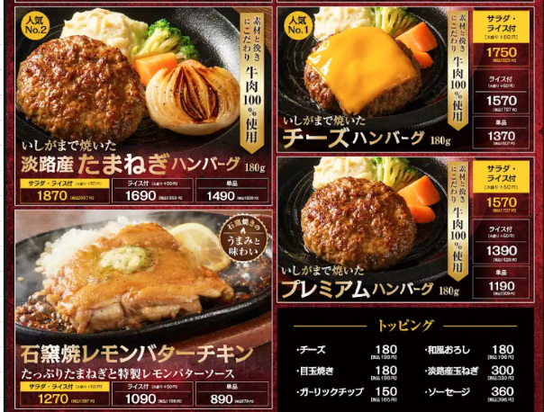 We've completely revamped our menu, making it easier to understand and order, and we're back! Our most popular item, the cheese hamburger steak, is grilled in a stone oven for a juicy and delicious taste!