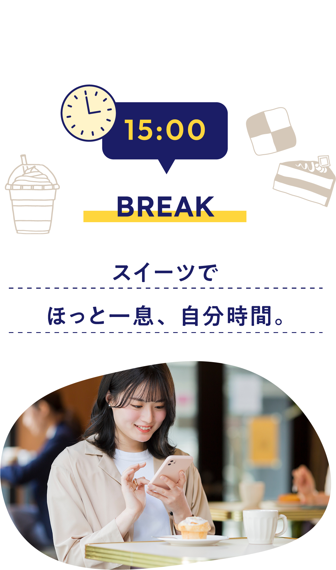 ショーケースに並んだ、宝石のようなチョコレートや、美しいタルトにうっとり。どれにしようか迷う時間も、一人だからこそ楽しめる贅沢な時間。こだわりのスイーツを味わいながら、ゆっくりと休憩の時間を満喫。