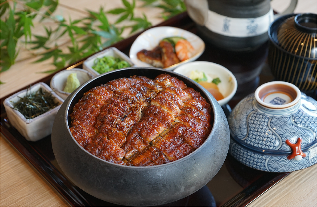 矢作川の清流水で育まれた三河産鰻を養鰻池から直送し厳選された鰻をご提供します。熟練の手焼きでじっくりと焼きあげた炭焼鰻をコク深いこだわりのタレでご賞味下さいませ。