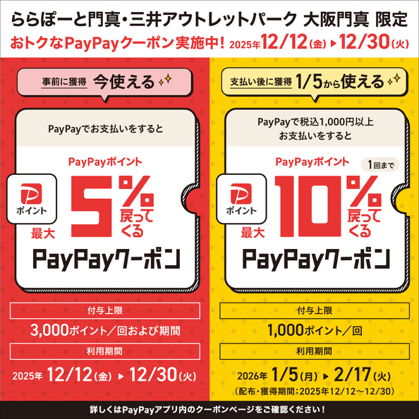 During the period from December 12th (Friday) to December 30th (Tuesday), you can get a coupon in advance from the PayPay app,