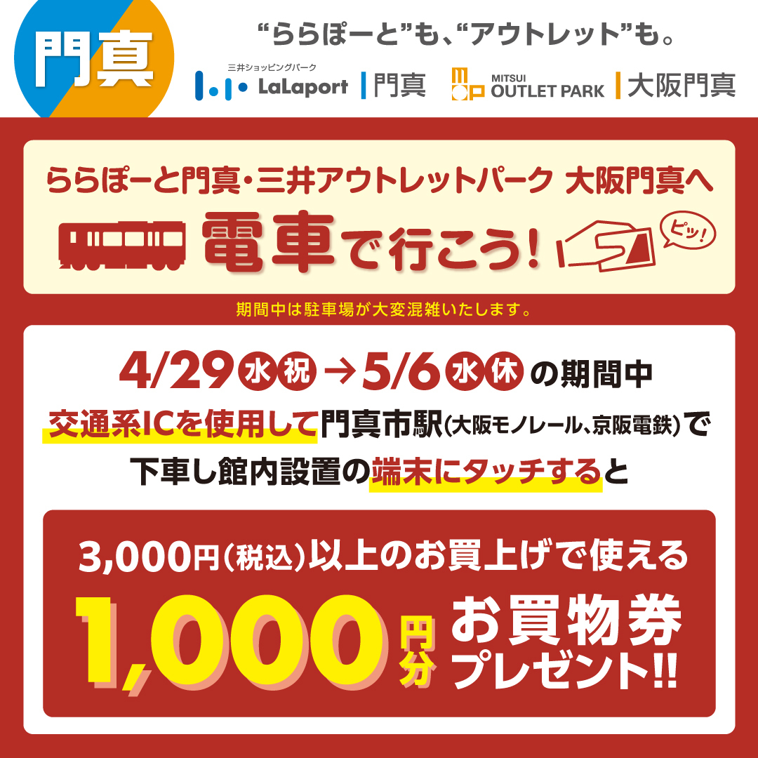 Shopping vouchers can only be used at LaLaport Kadoma and MITSUI OUTLET PARK OSAKA KADOMA.