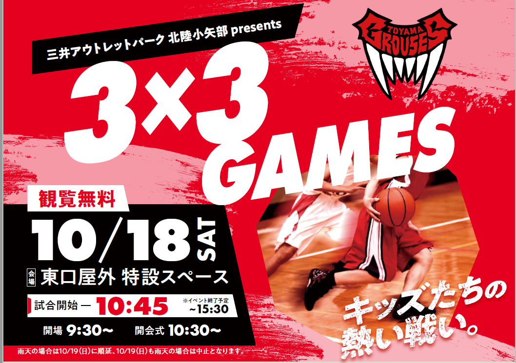 MITSUI OUTLET PARK HOKURIKU OYABE and Hokuriku Shimbun will be hosting "3x3 GAMES" for Kids.